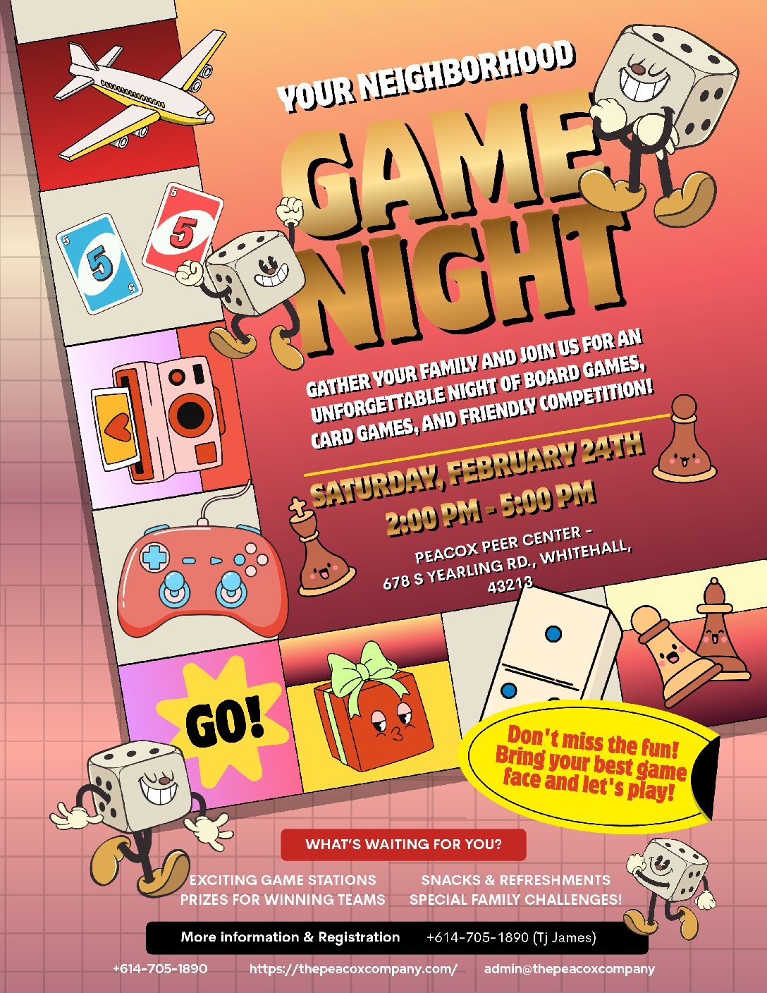 Your Neighborhood Game Night: Gather your family and join us for an unforgettable afternoon of board games, card games, and friendly competition. |